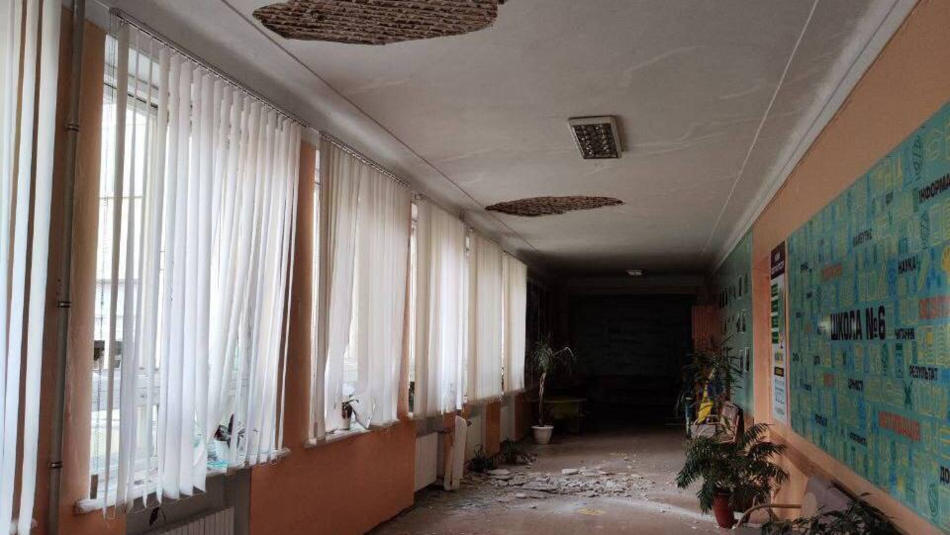 - Навчальний заклад – школа №6, де вибито 85 вікон та впало 250 кв. м стелі.